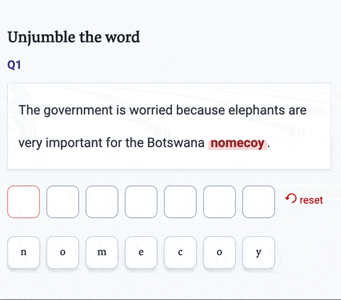 The letters of one word are in the wrong order. Read the sentence. Spell the word correctly. There are up to 10 questions.