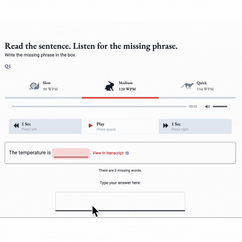 • Predict the phrase missing from the sentence before listening